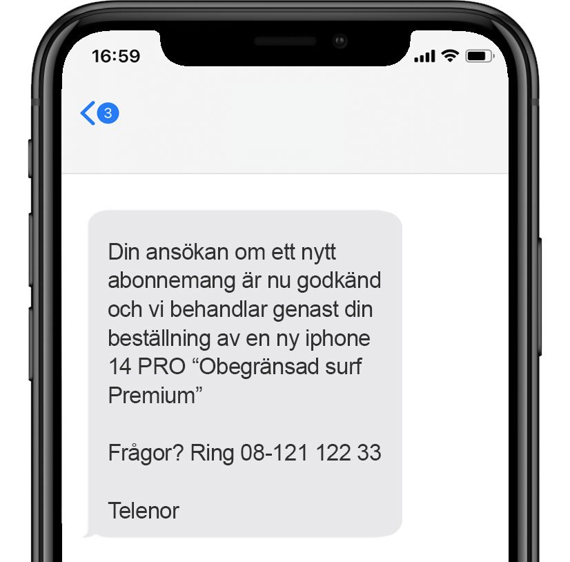 Bluffen ser ut att komma från ett välkänt företag och innehåller en bekräftelse på beställning av varor eller tjänster, exempelvis telefonabonnemang eller en ny telefon. Vid frågor uppmuntras man att kontakta företaget på det angivna telefonnumret.