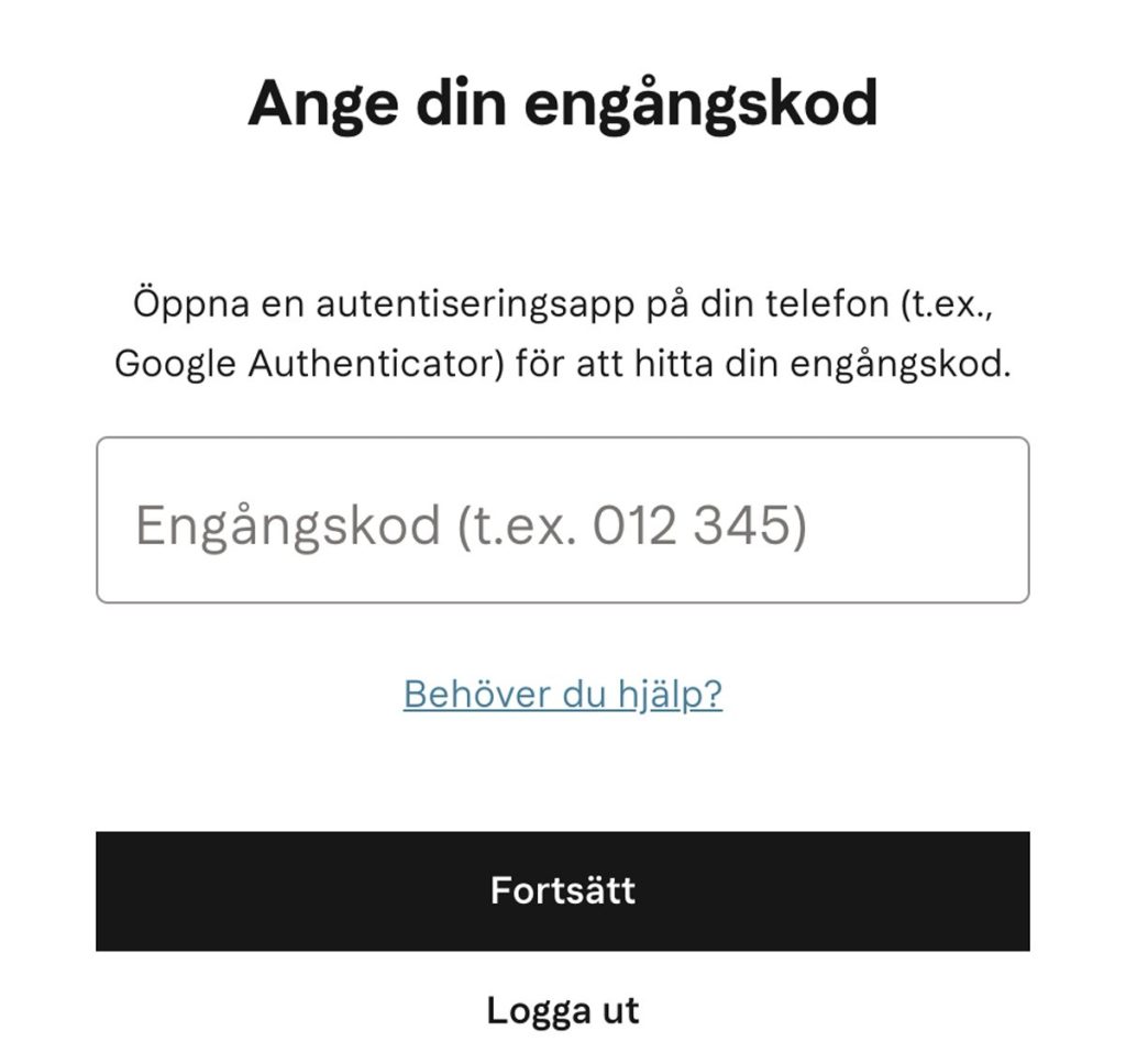 Så här kan det se ut när man loggar in med tvåfaktorsautentisering.